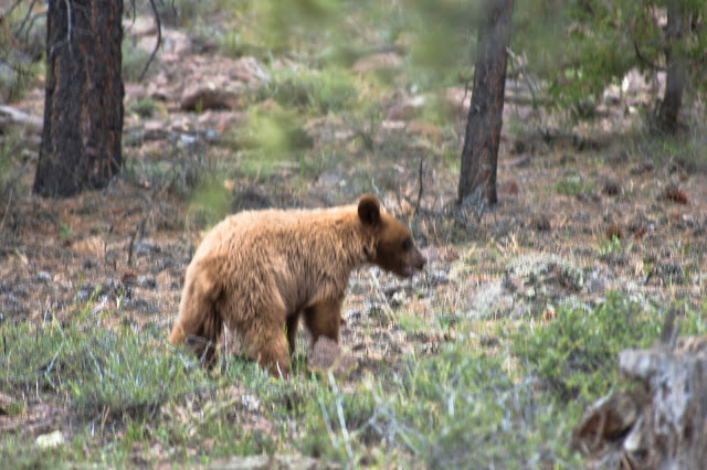 We drove Hell's Backbone Trail yesterday - finally after 20+ years completed a journey begun quite a while ago and aborted due to slushy, muddy roads in July that had us sliding towards the edge! Much wonderful scenery and places to stop and relax, including the Blue Spruce campground. But the highlight of the trip was spotting the above cinnamon bear!
