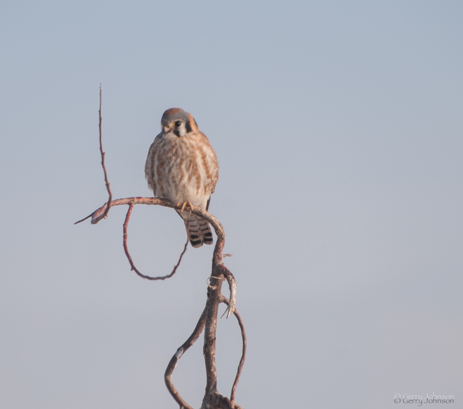 It started with a Rough-legged Hawk on the Kestrel house, then a kestrel that waited while I took his portrait, on to a young horned owl in a tree that sat and watched me, harriers, then a barn owl and finally a Great Blue Heron (GBH). The variety was inspiring as was the sunset - although much of the drama of the sunset was due to the smog in the valley - beautiful nonetheless. Photos of that later.