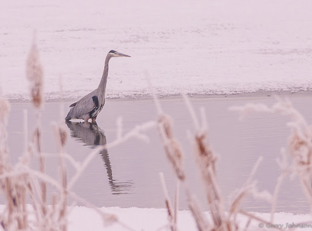 Halfway down the dike there was open water and the gulls, eagles, and herons congregated around the open spots. A young eagle caught a fish and was pursued by a gull for a short time. A heron caught a fish and his buddy decided to visit him - but only for a short time before he was chased off. The dynamics amongst the wildlife is fascinating to me to watch and learn. Here's some of the photos for the stories from today!
