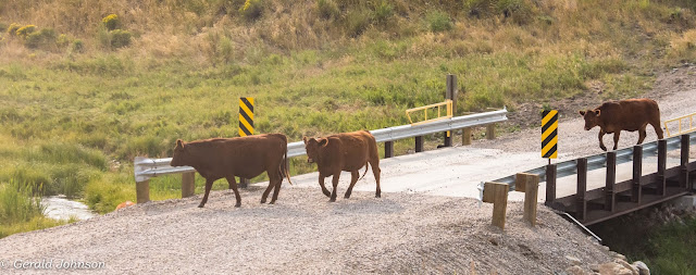 Cattle are used to mimic the buffalo - keeping the grass short in certain areas so the birds that like short grasses have a place to live. Of course they are often in the road and you and your vehicle take second place!