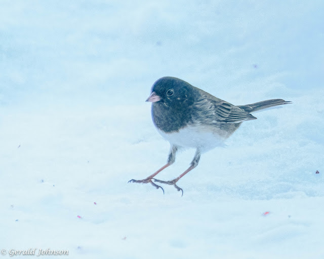 With our snow and cooler weather the small birds have been quite active. Not much sunlight, so a bit challenging to get a partially decent photo, but what else do I have to do?